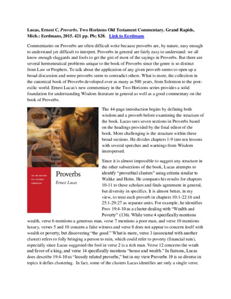 Read read online proverbs horizons testament commentary thotc Epub By Click Button. read online proverbs horizons testament commentary thotc it’s easy to recommend a new book category such as Novel, journal, comic, magazin, ect. You see it and you just know that the designer is also an author and understands the challenges involved with having a good book. You can easy klick for detailing book and you can read it online, even you can download it